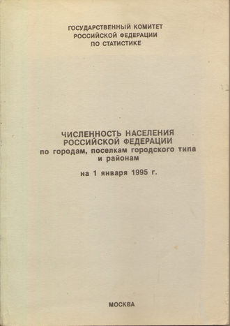 В разделах Численность населения Российской федерации по городам, поселкам городского типа и районам на 1 янв. 1995 г., №38023Москва. 1995 г. Госкомстат. 210 стр. В издательской обложке.
