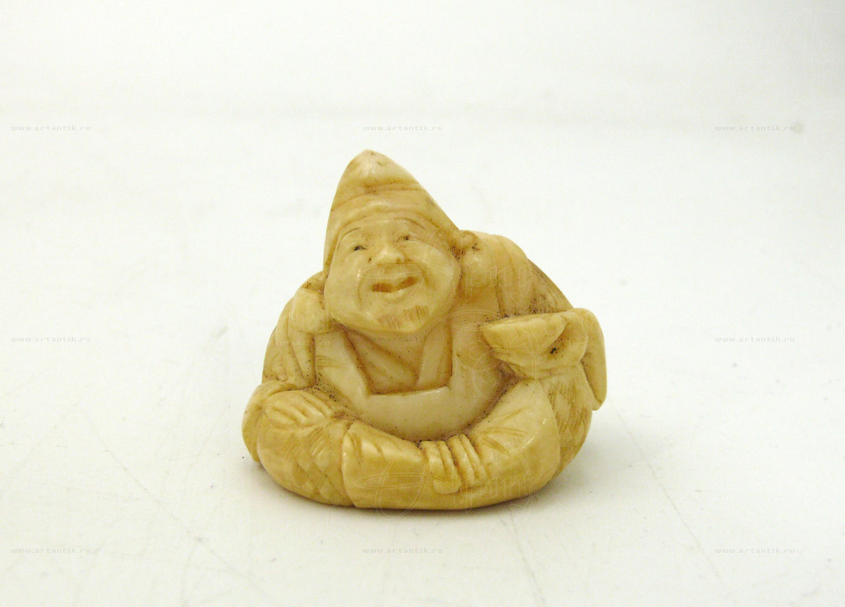 В разделах Нэцкэ "Эбису", №47725Эбису - один из семи богов счастья, бог счастья и удачи. Эбису изображается с волшебной рыбой Тай — символом удачи и успеха, также он считается божеством рыбалки и труда, а также хранителем здоровья маленьких детей.