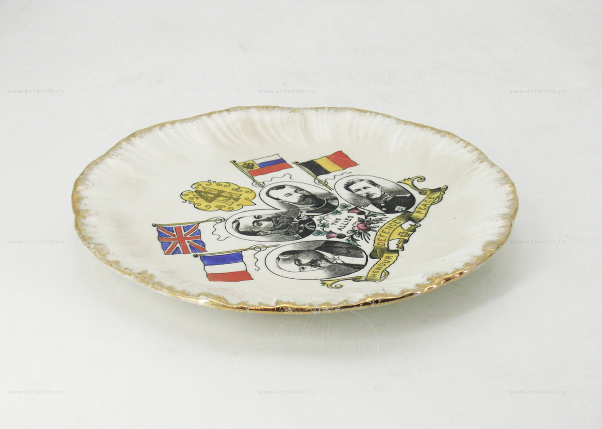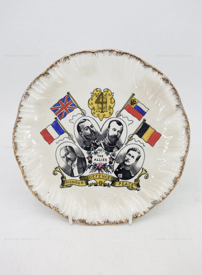 В разделах Декоративная тарелка "Антанта", №47745На фоне флагов своих стран изображены главы государств-членов Антанты: Император Российской империи Николай II, президент Франции Пуанкаре, король Бельгии Альберт I, король Соединённого Королевства Великобритании и Ирландии Георг V. ![]() Удобные условия доставки и оплаты, простая схема сотрудничества ![]() Разнообразие выбора антиквариата на любой вкус ![]() Консультирование по всем вопросам, касающимся покупки антиквариата |