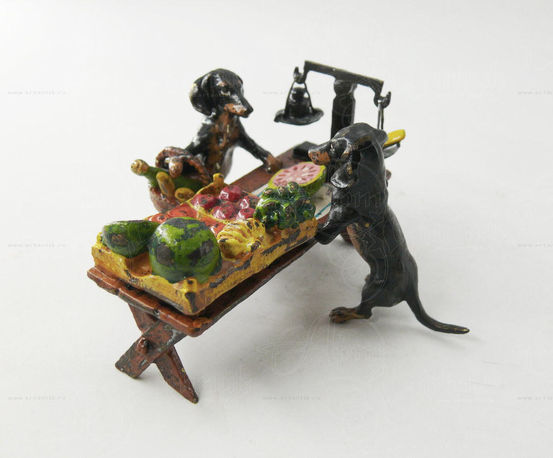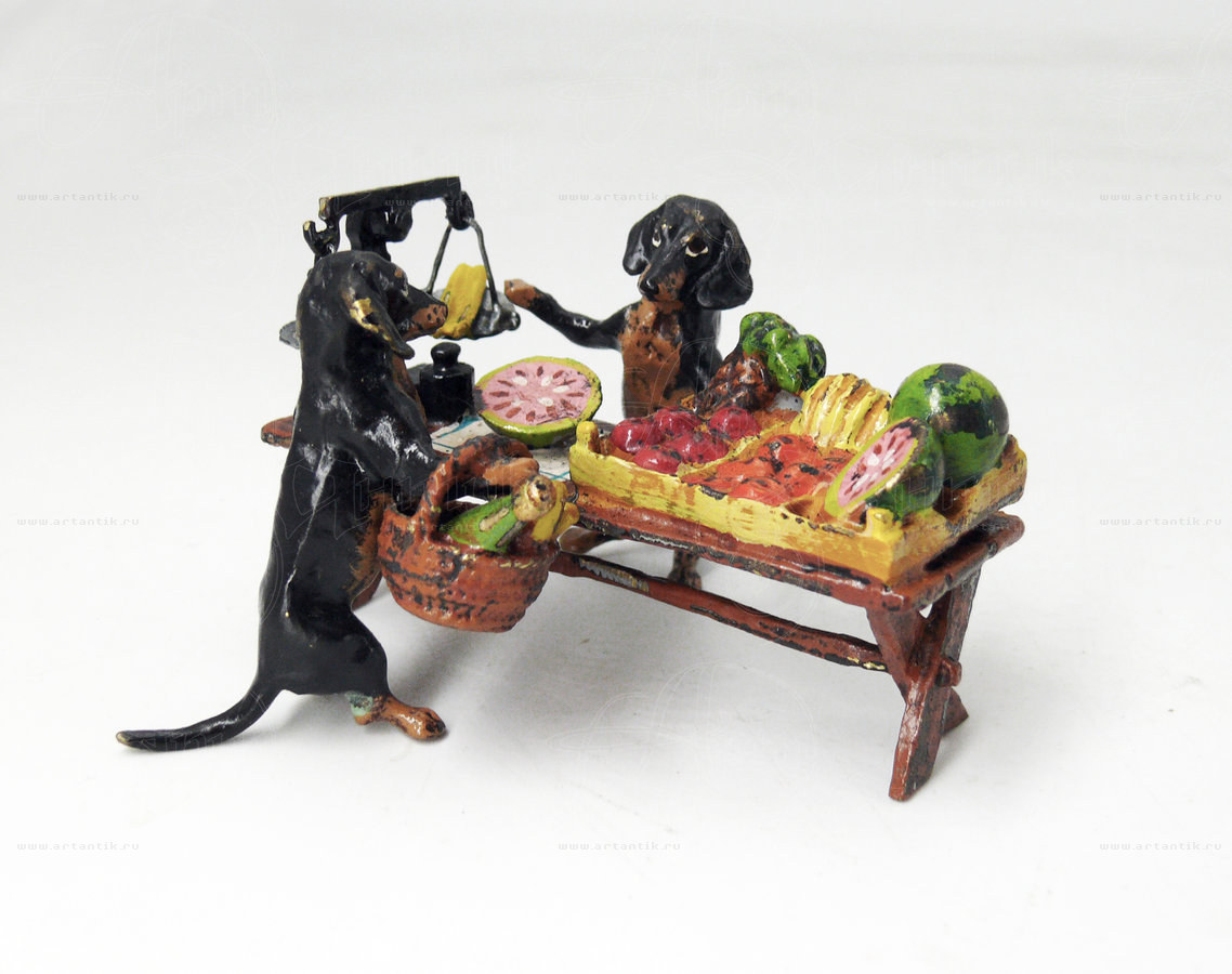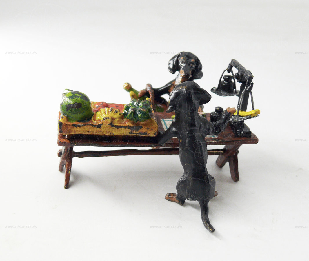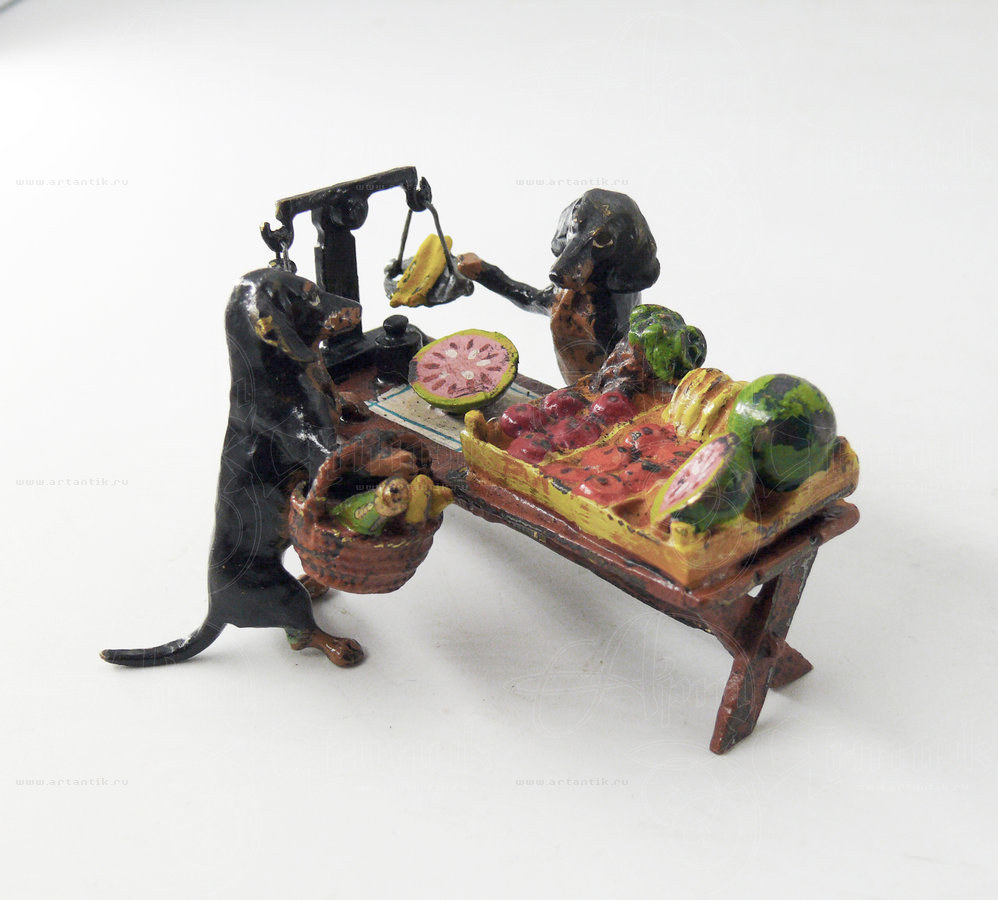 В разделах Миниатюра "Таксы на рынке", №47768Поражающая своей детальностью композиция в такой популярной для "венской бронзы" теме "животные как люди": одна такса - покупательница, отоваривается на рынке у второй - продавщицы. На прилавке стоят весы и коробки со всевозможными овощами. Всё выполнено очень подробно и натуралистично, даже чаши весов покачиваются от прикосновения. ![]() Удобные условия доставки и оплаты, простая схема сотрудничества ![]() Разнообразие выбора антиквариата на любой вкус ![]() Консультирование по всем вопросам, касающимся покупки антиквариата |