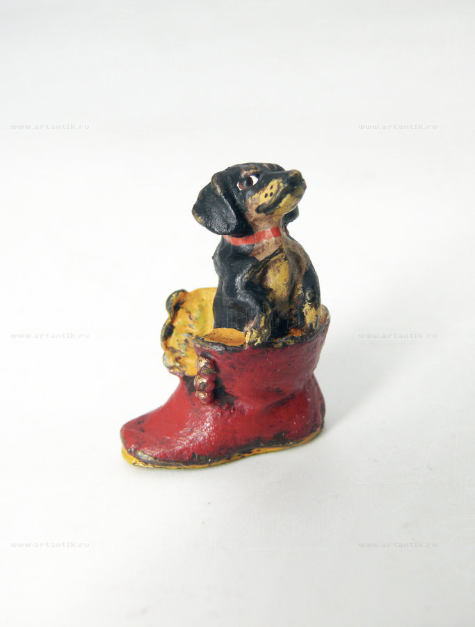 В разделах Миниатюра "Такса в ботинке", №47784Отличный пример великолепной работы с бронзой в небольшом формате: композиция изображает таксу в кожаном ботинке. ![]() Удобные условия доставки и оплаты, простая схема сотрудничества ![]() Разнообразие выбора антиквариата на любой вкус ![]() Консультирование по всем вопросам, касающимся покупки антиквариата |