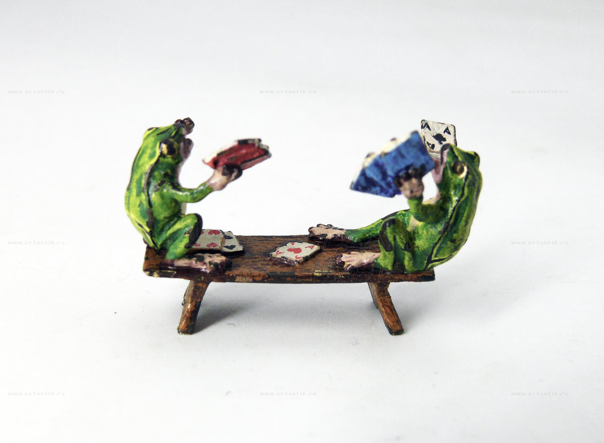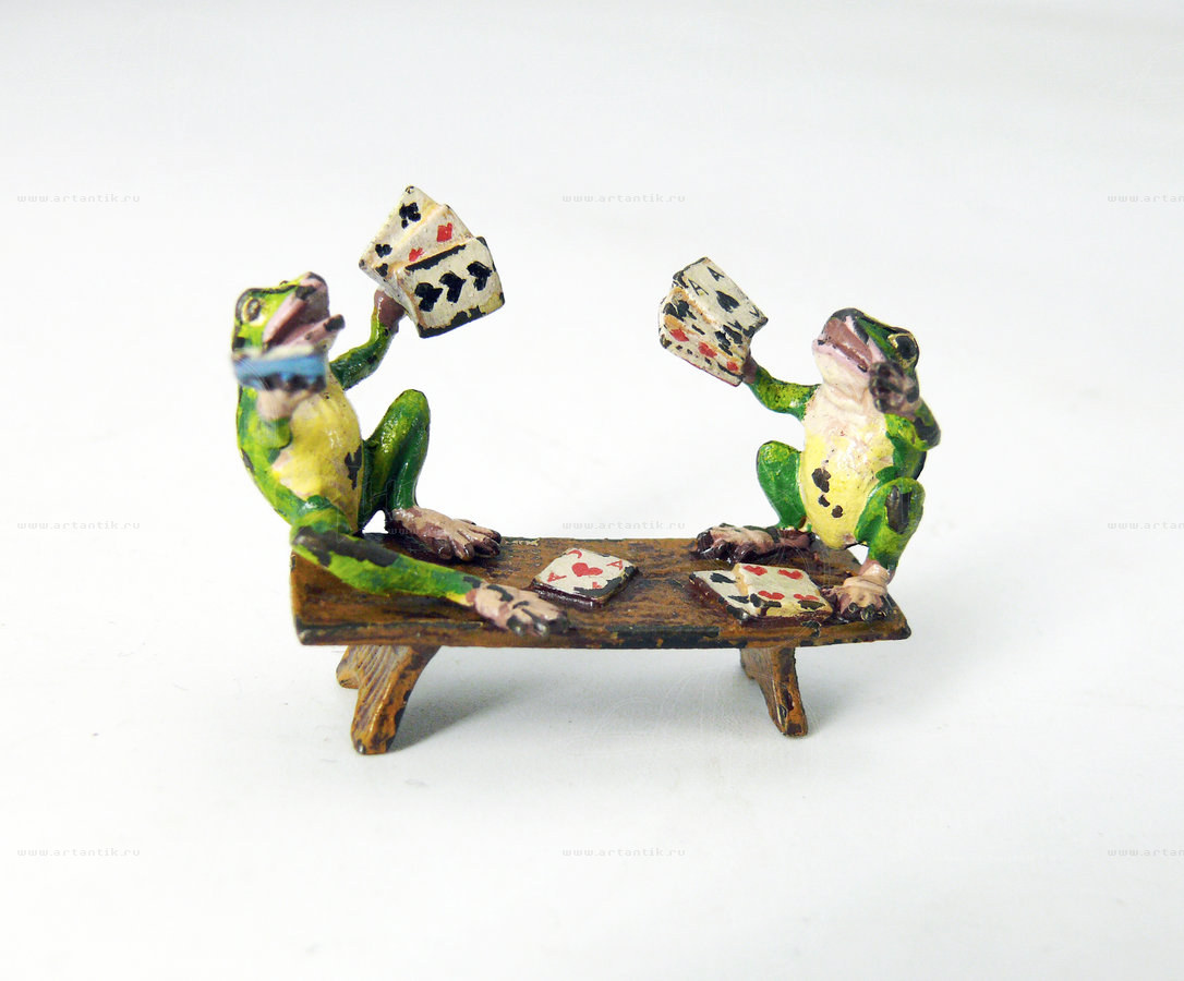 В разделах Миниатюра "Лягушки, играющие в карты", №47785Забавная бронзовая статуэтка в столь популярной в "венской бронзе" теме "животные как люди": изображены две азартно играющие в карты лягушки. Поразительная проработка мельчайших деталей в столь небольшой по размеру статуэтке. ![]() Удобные условия доставки и оплаты, простая схема сотрудничества ![]() Разнообразие выбора антиквариата на любой вкус ![]() Консультирование по всем вопросам, касающимся покупки антиквариата |