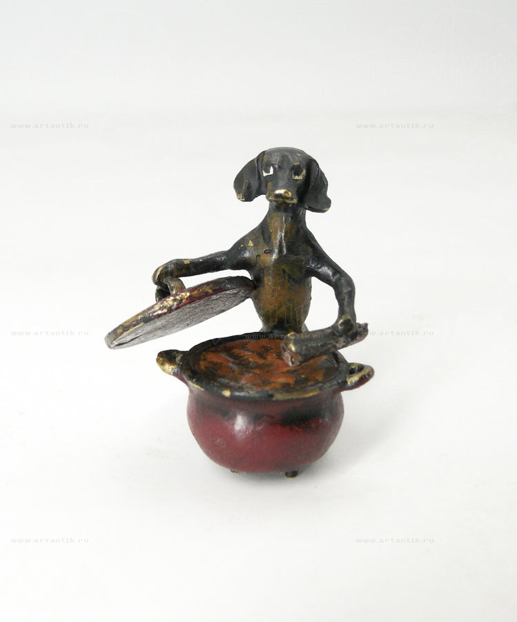 В разделах Миниатюра "Такса у котла", №47786Забавная анималистическая композиция: такса, держащая в передних лапах , как в руках, крышку от котла и помешивающая еду. ![]() Удобные условия доставки и оплаты, простая схема сотрудничества ![]() Разнообразие выбора антиквариата на любой вкус ![]() Консультирование по всем вопросам, касающимся покупки антиквариата |