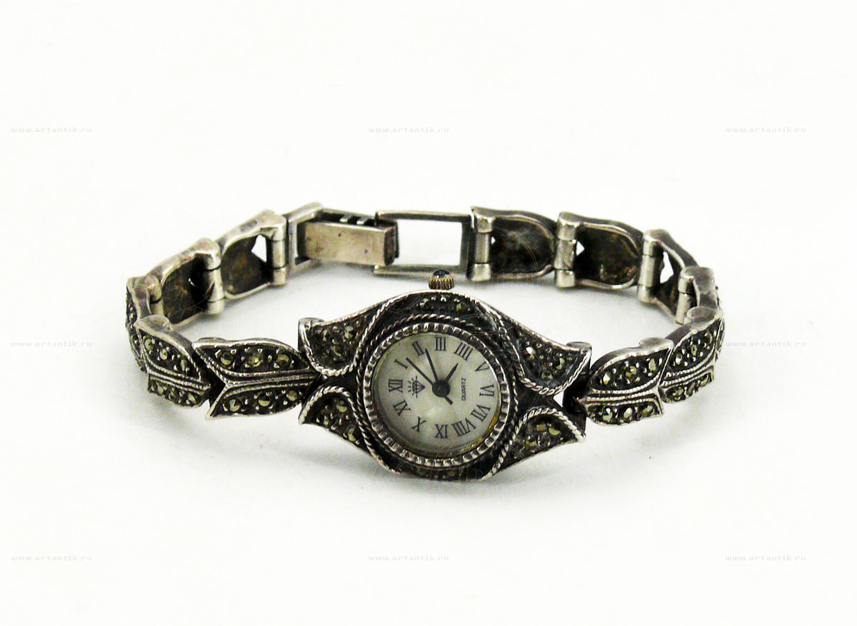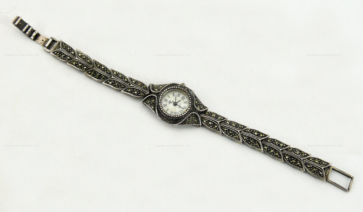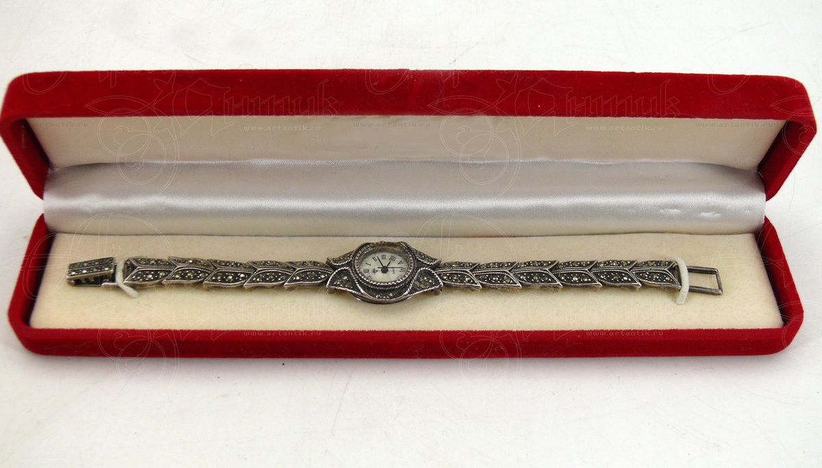В разделах Часы женские в футляре, №47833Серебряные механические часы на серебряном браслете.