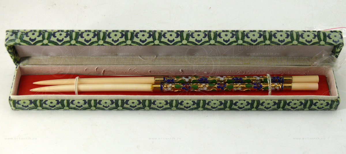 В разделах Палочки для восточной еды, №47839Две палочки, украшенные эмалью, в подарочном футляре. ![]() Удобные условия доставки и оплаты, простая схема сотрудничества ![]() Разнообразие выбора антиквариата на любой вкус ![]() Консультирование по всем вопросам, касающимся покупки антиквариата |