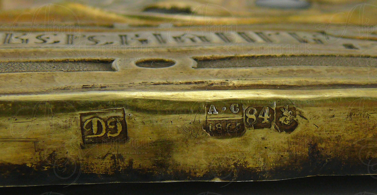 Серебро 84*. Клеймо мастера "ДГ", пробирного мастера с датой "А.С 1865", герб Москвы