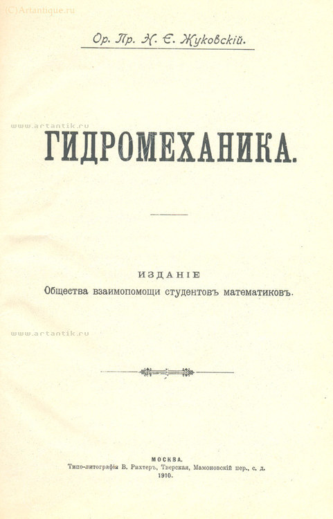 В разделах Н.Е. Жуковский , №23548Москва. 1910 г. 122 стр. Издание общества студентов - математиков. Отпечатано путем стеклографии. В любительском картонажном переплете.