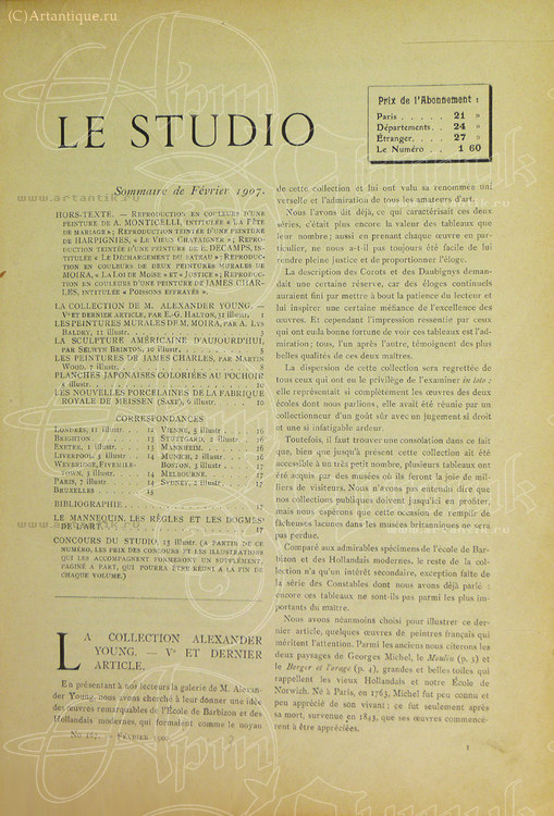 В разделах Журнал "Студио", №28261Париж. 1907 г. № 167. 252 стр. с иллюстрациями в тексте. В глухом любительском переплете.