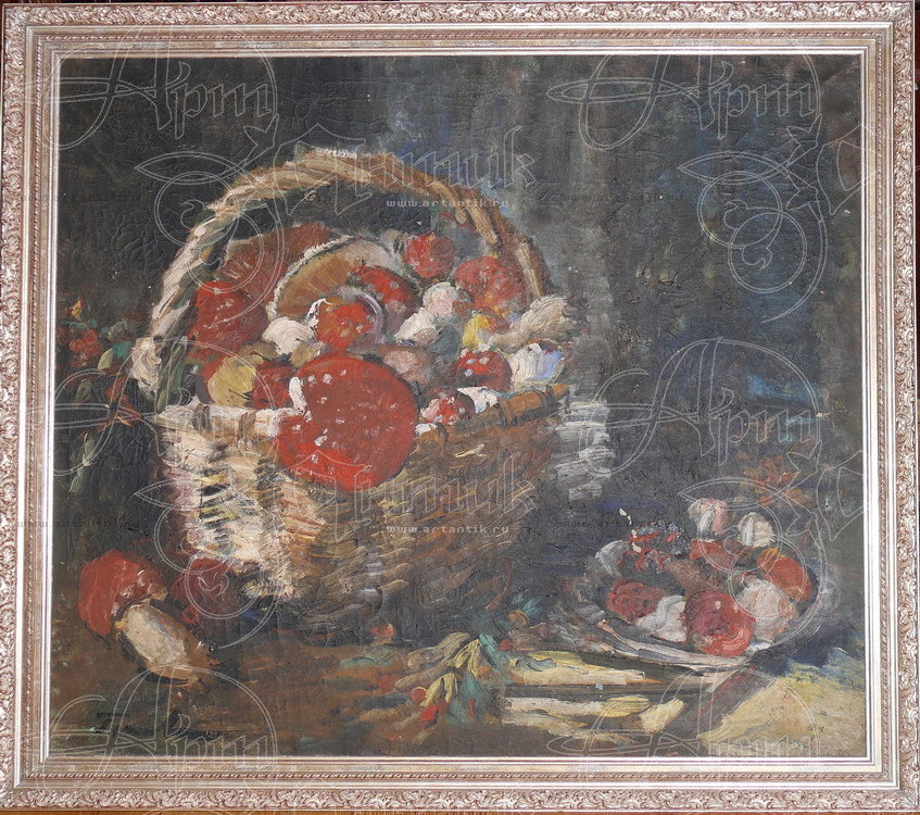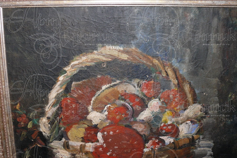 Место написания картины - деревня Корпуса, рядом с санаторием Монино, Московская область. На опушке густого соснового леса - корзина с мухоморами.