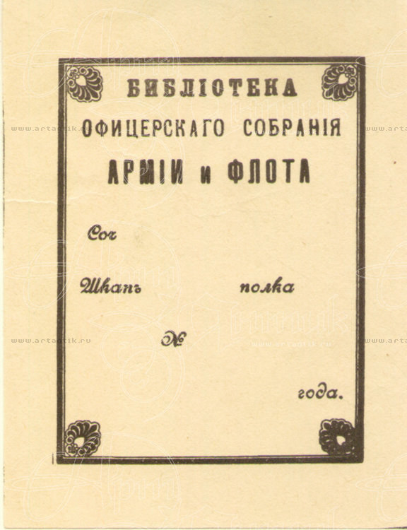 Книжный ярлык библиотеки офицерского собрания Армии и Флота
