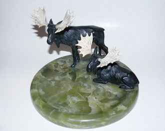 В разделах Визитница "Лоси", №38486На каменной визитнице - бронзовые лоси с рогами, вырезанными из рога.