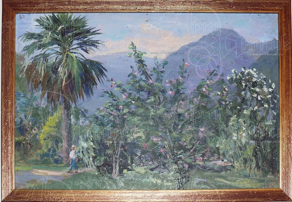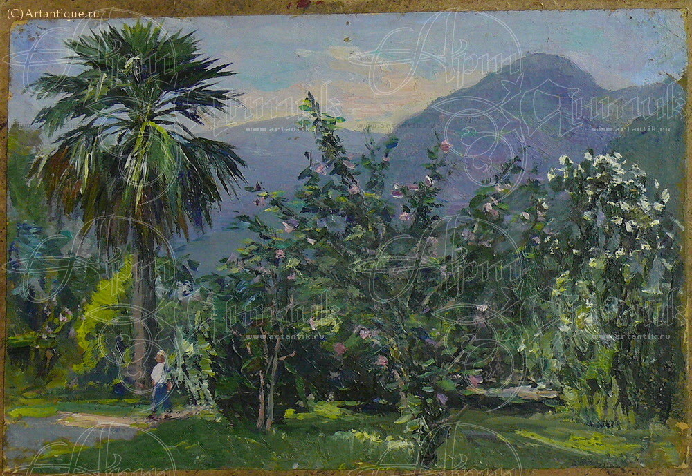 На картине изображен Никитский ботанический сад в Ялте (Крым).