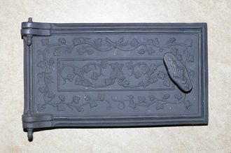В разделах Дверца для печи "Хмель", №39504Чугунная дверца с декором из рельефных побегов хмеля.