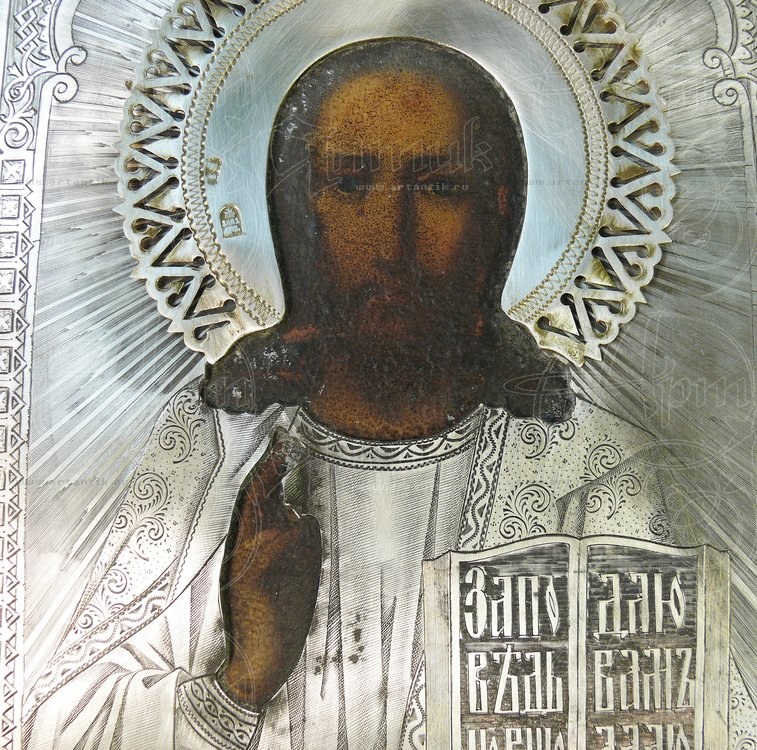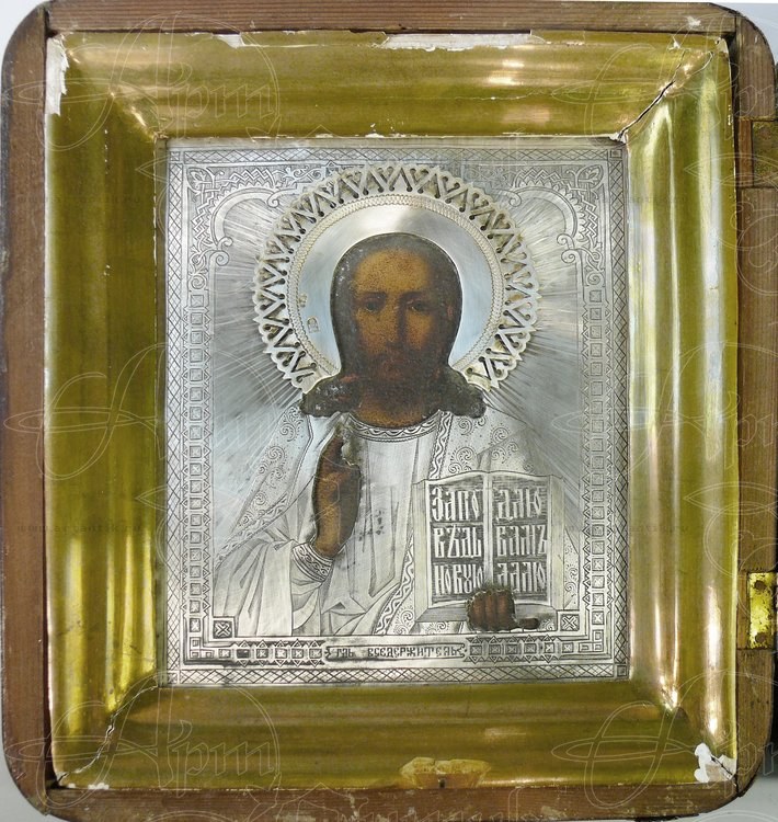 В разделах Икона "Господь Вседержитель", №40490Икона подокладная, в серебряном окладе и киоте.