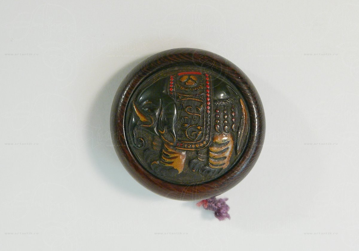 В разделах Нэцкэ "Кагамибута" , №42657Костяная вставка с резным изображением слона.