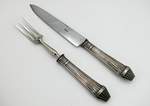 В разделах Набор разделочный для мяса в футляре, №45158Размеры предметов: нож 32 см, вилка 28 см.
