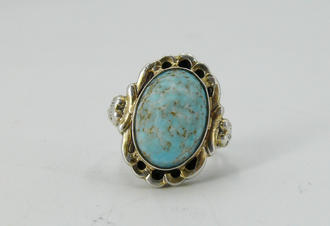 В разделах Кольцо с бирюзой, №46208Элегантное коллекционное кольцо с бирюзой в серебряной оправе (875*) представляет собой уникальный ювелирный артефакт. Этот предмет обладает высокой исторической ценностью, отражая художественные и стилевые тенденции эпохи, а также мастерство серебряных мастеров того времени. В кольце сочетаются утонченность форм и уникальность драгоценного камня, что делает его не только стильным аксессуаром, но и ценным объектом коллекционирования.