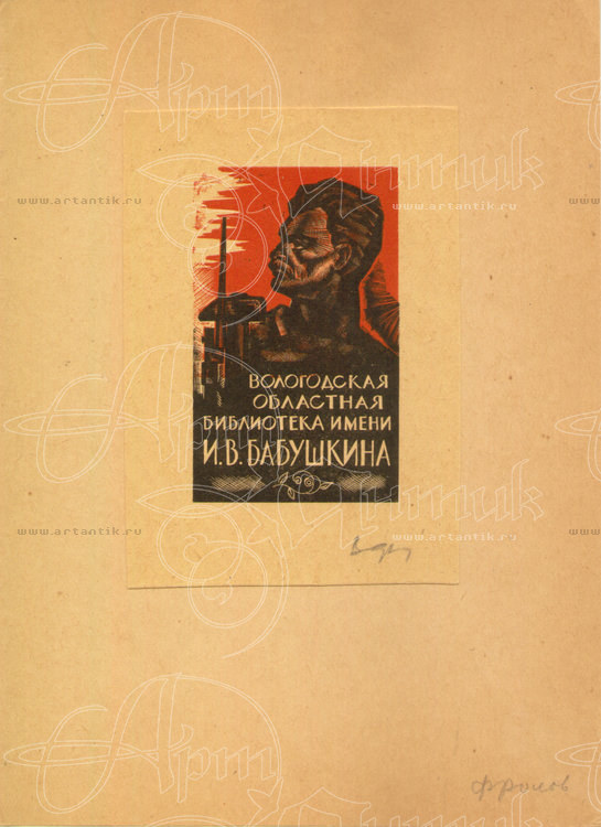 Экслибрис Вологодской Областной библиотеки им. И.В. Бабушкина. Автор В.А. Фролов