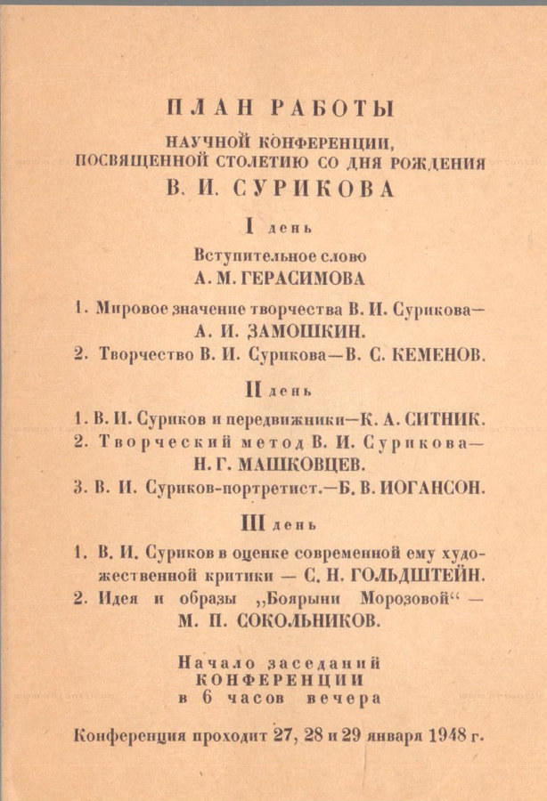 Посвященное 100 летию со дня рождения В.И. Сурикова