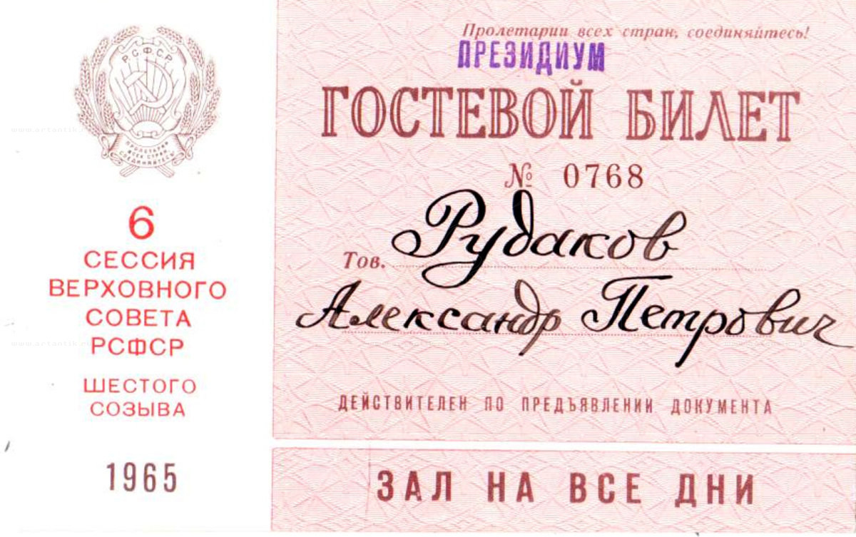 На 6 сессию Верховного Совета РСФСР шестого созыва. 1965 г.