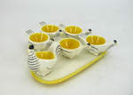В разделах Набор подставок под яйца "Курочки" на подносе, №47255Шесть пашотниц для яиц- 1 петушок и 5 курочек.