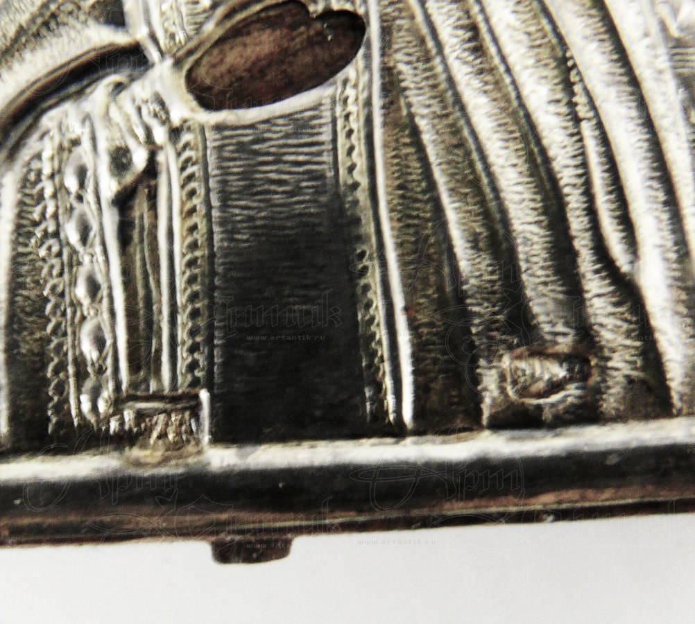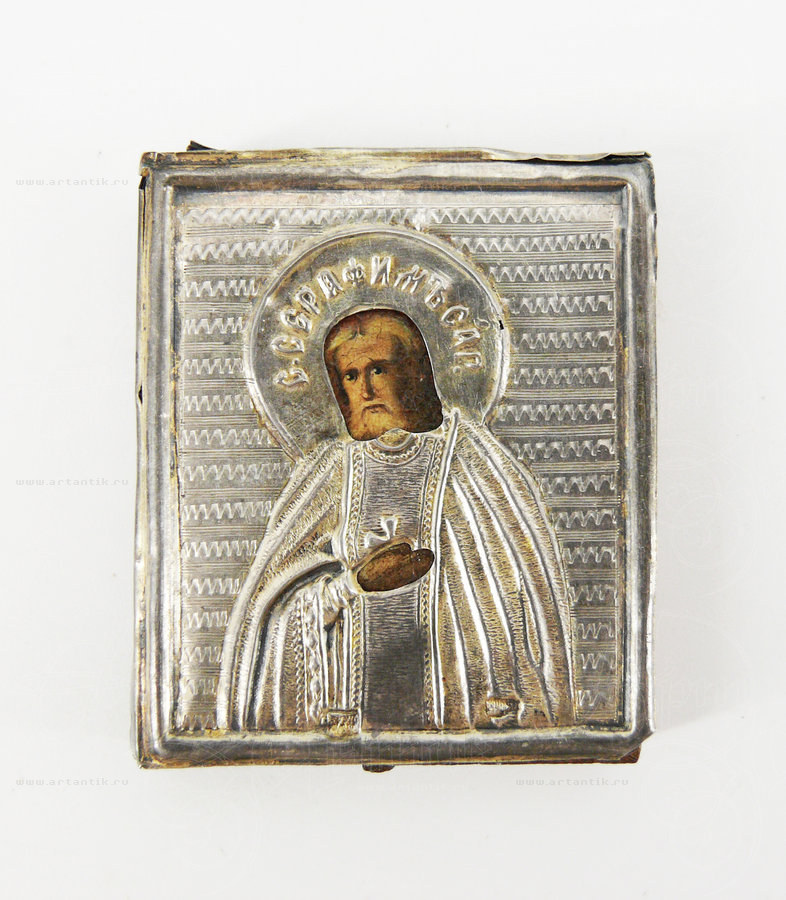 Икона "Серафим Саровский"Цена: Серебро 84*. Клеймо мастера "Ф.М"Миниатюрная подокладная икона, в серебряном окладе.