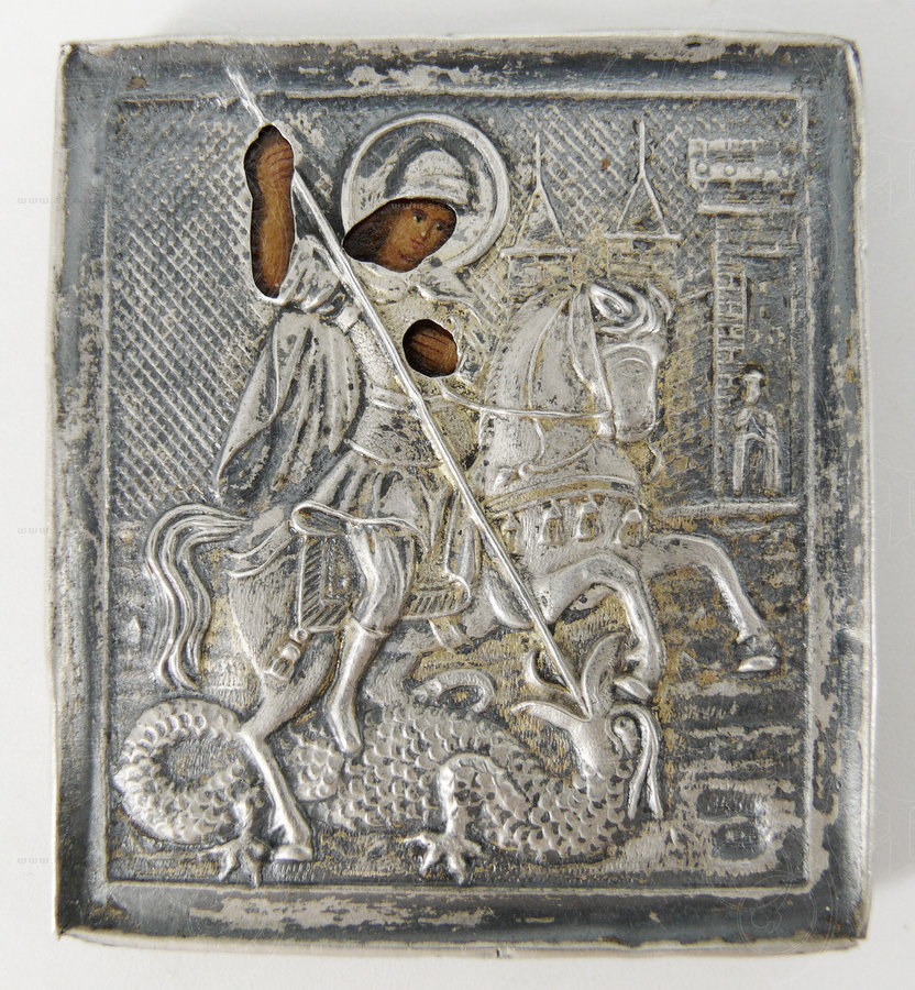 Миниатюрная подокладная икона. Оклад серебряный, 84*, клеймо мастера неразборчиво.