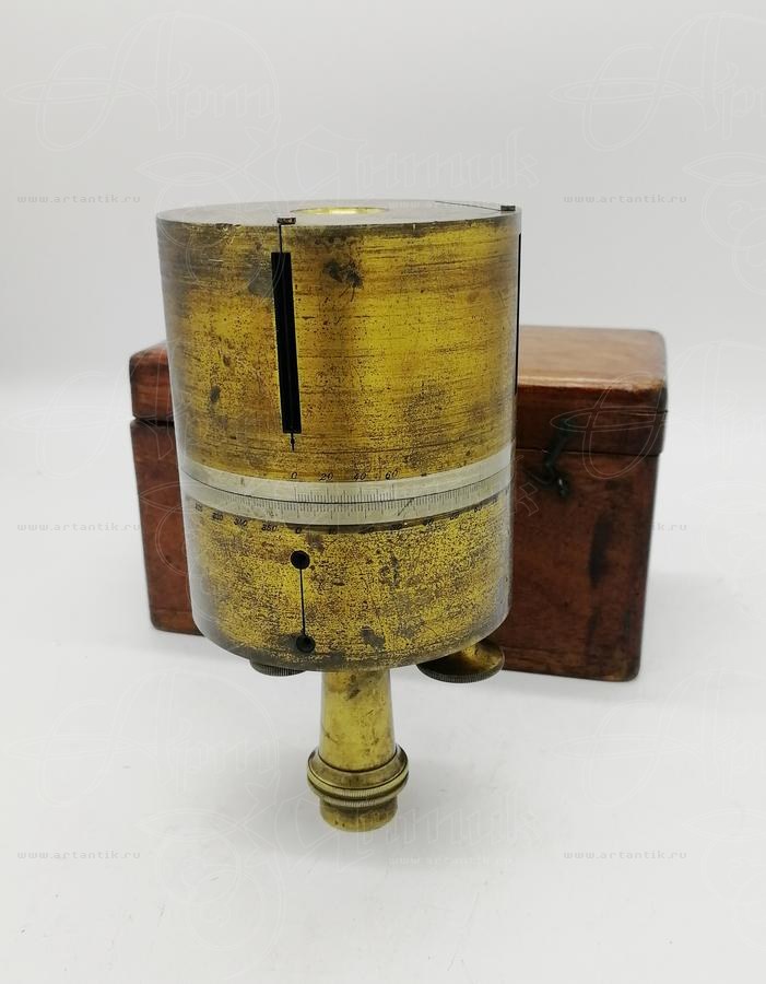 Гониометр (измерение углов)Цена: Западная Европа, конец XIX начало XX вв.Геодезический прибор позволяет производить измерение и разбивку на произвольные углы (аналогично землемерной астролябии). Прибор в оригинальном футляре красного дерева, без повреждений и хорошей сохранности. Указаны внешние размеры футляра.