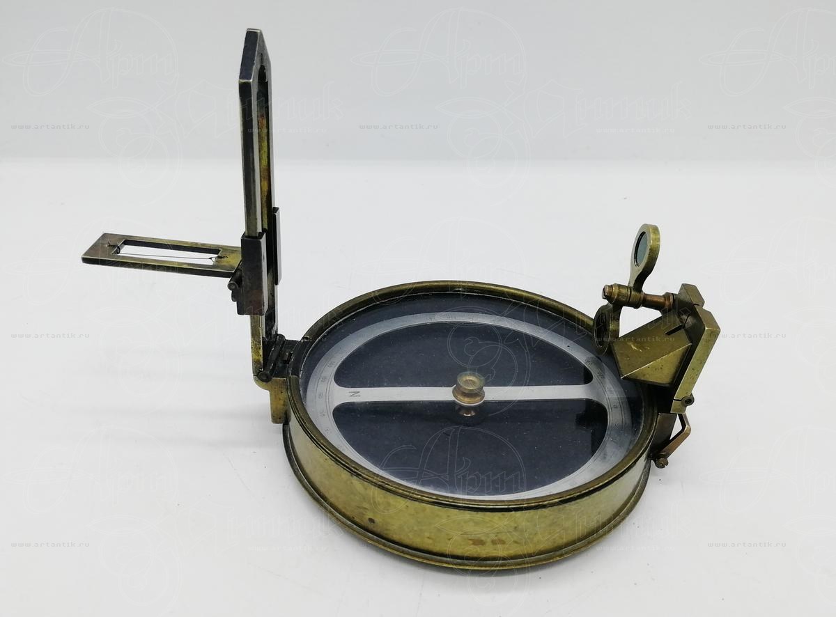 Буссоль геодезическая "A.G. Thornton Ltd"Цена: Англия, конец XIX - начало XX вв.Профессиональный геодезический инструмент для измерения углов при топографических съемках. Инструмент в отличной сохранности и рабочем состоянии. Предназначен для установки на штатив. Есть клеймо "A.G. THORNTON Ltd MANCHESTER PVD J 54"