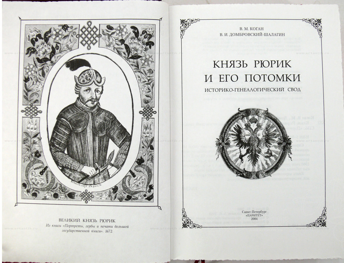 "Князь Рюрик и его потомки" В. М. Коган, В.И. Домбровский - Шалагин.Цена: Санкт- Петербург, 2004г.Санкт-Петербург, изд. "Паритет", тираж 3000 экз., 688 стр