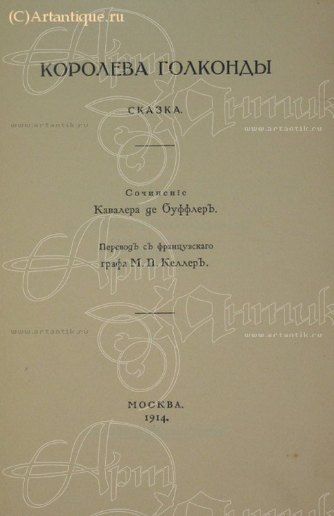 В разделах Сказка Буффлера, №4869Москва. 1914 г. Скоропечатня А. А. Левенсона. 35 стр. В любительской обложке. Отпечатано 10 экз. на ручной бумаге и 200 экз. на бумаге верже. Экземпляр № 30. ![]() Удобные условия доставки и оплаты, простая схема сотрудничества ![]() Разнообразие выбора антиквариата на любой вкус ![]() Консультирование по всем вопросам, касающимся покупки антиквариата |