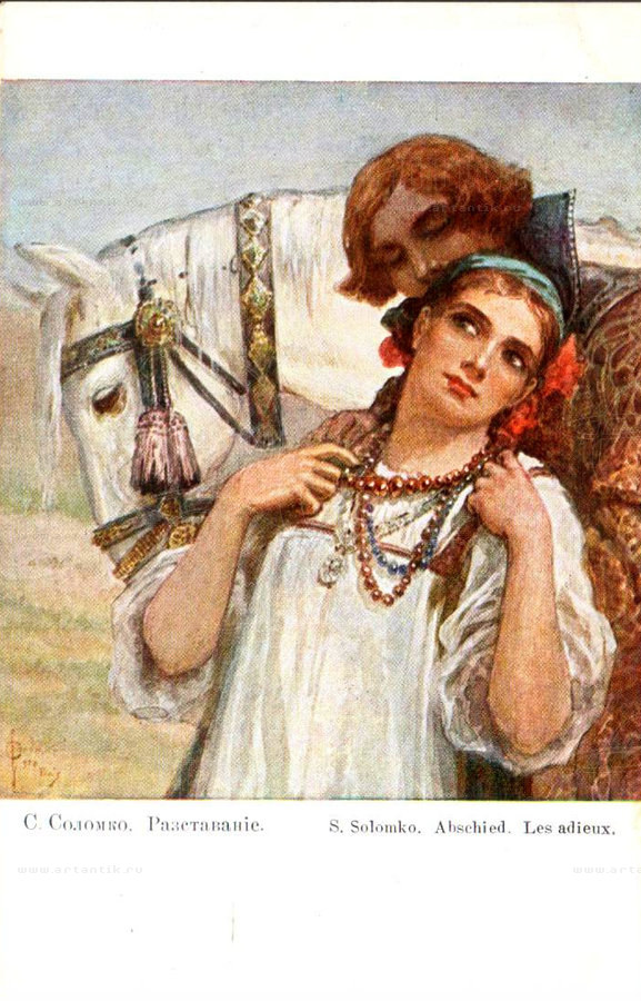 Открытки "Художник С.С. Соломко"Цена: 1904 -1914 гг.Сергей Сергеевич Соломко родился 10 (22) августа 1867 г. в Санкт-Петербурге и был крещен 12 (24) сентября в Исаакиевском соборе. Происходил из потомственных дворян Черниговской губернии. Сын полковника Сергея Афанасьевича Соломко (1835—1897), состоявшего на службе при великом князе Константине Николаевиче и Ольги Фаустовны Занадворовой.
